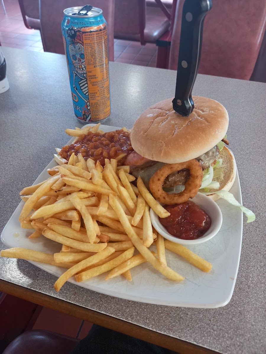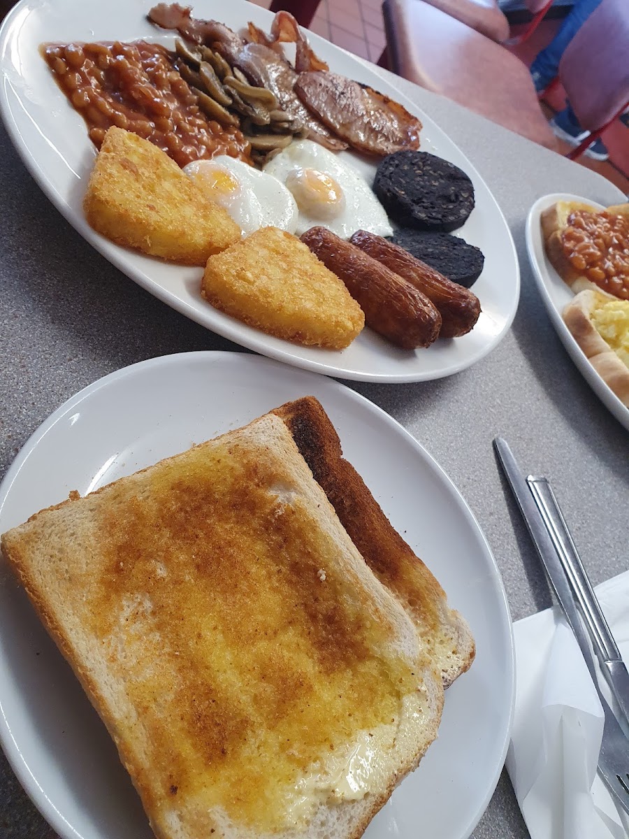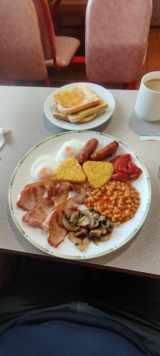 Properly good food, excellent service and good location just off the motorway with plenty of parking. The Challenger Breakfast pictured was £13 and went down easily with a coffee included. It wasn't greasy and swimming in oil and came with three slices of toast. Highly recommended, busy spot so expect a slight wait for your order to be taken however once ordered, your food comes out quickly!