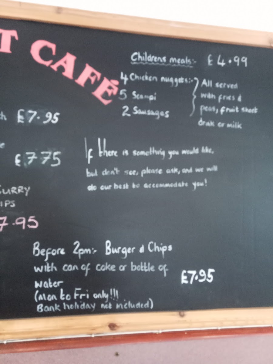 Expect familiar favourites like a Full English Breakfast and a three-egg omelette with mushrooms, alongside simple yet hearty choices such as egg, beans, and chips or a jacket potato topped with cheese and bacon. Alongside traditional breakfast offerings, you’ll find options like cheeseburgers and fries or a variety of burgers for something a little more substantial later in the day.